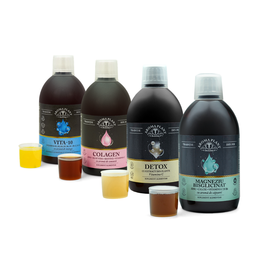 - Detox cu extract din plante și Vitamina C – susține procesele naturale de detoxifiere și contribuie la sănătatea ficatului și a sistemului digestiv.