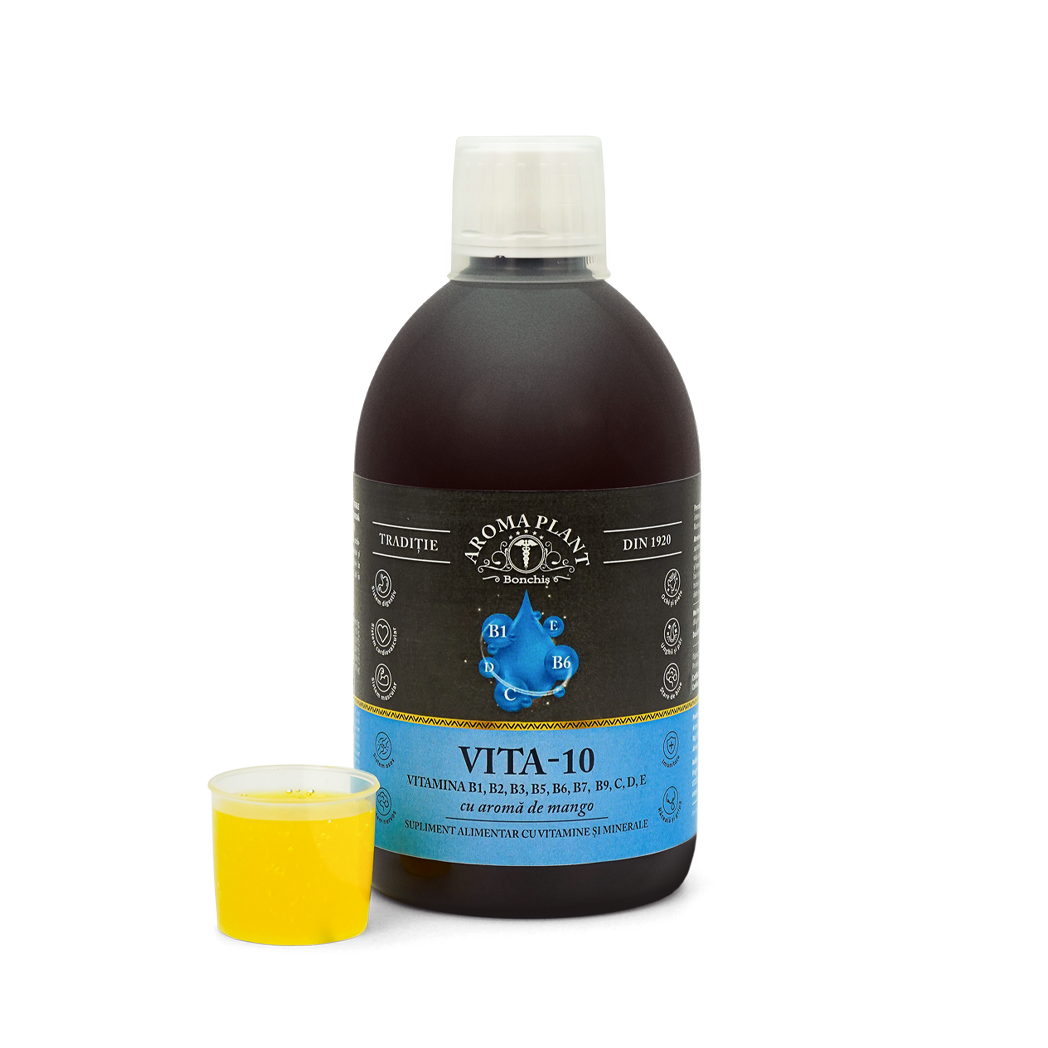 Vita 10 este un supliment lichid conceput pentru susținerea echilibrului nutrițional și pentru buna funcționare a organismului. Formula combină vitamine esențiale și minerale atent selectate, într-un produs ușor de administrat, cu aromă plăcută de mango. Este o alegere potrivită pentru persoanele care își doresc un aport zilnic echilibrat și un plus de susținere în perioadele aglomerate sau solicitante.
